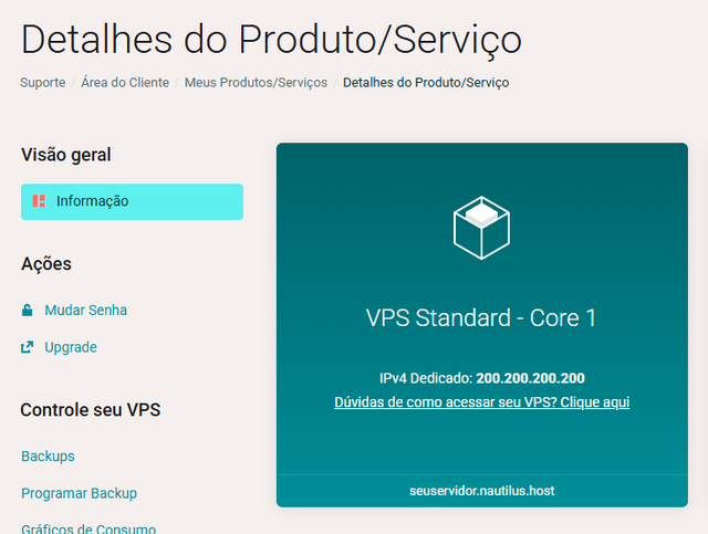 - Verifique seu email. As informações de acesso serão enviadas assim que seu VPS estiver disponível.